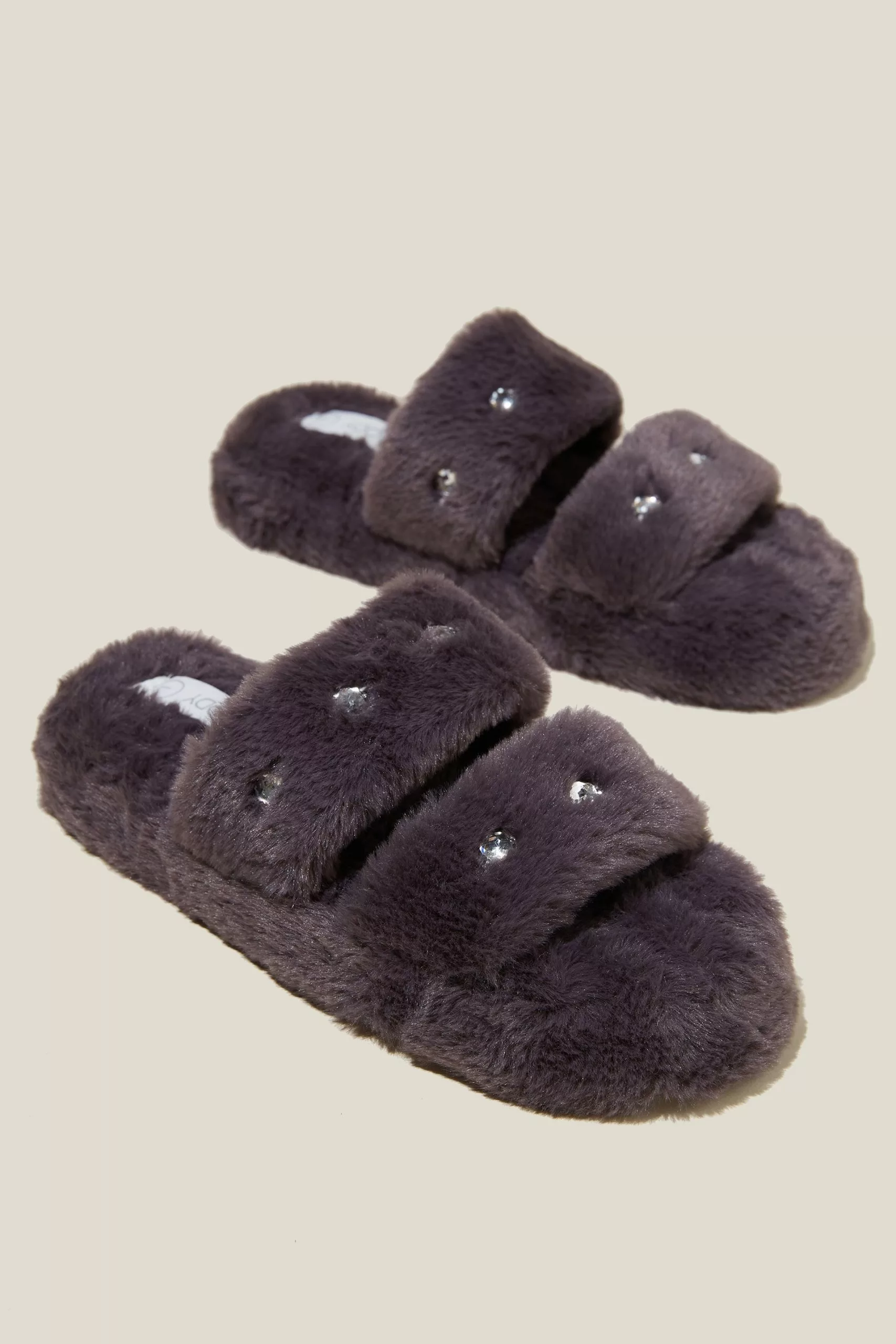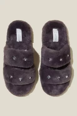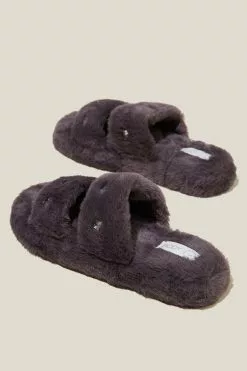 The Plush Fur Slide is the perfect lounging slipper for all day comfort. Features ultra soft faux fur and a double vamp.