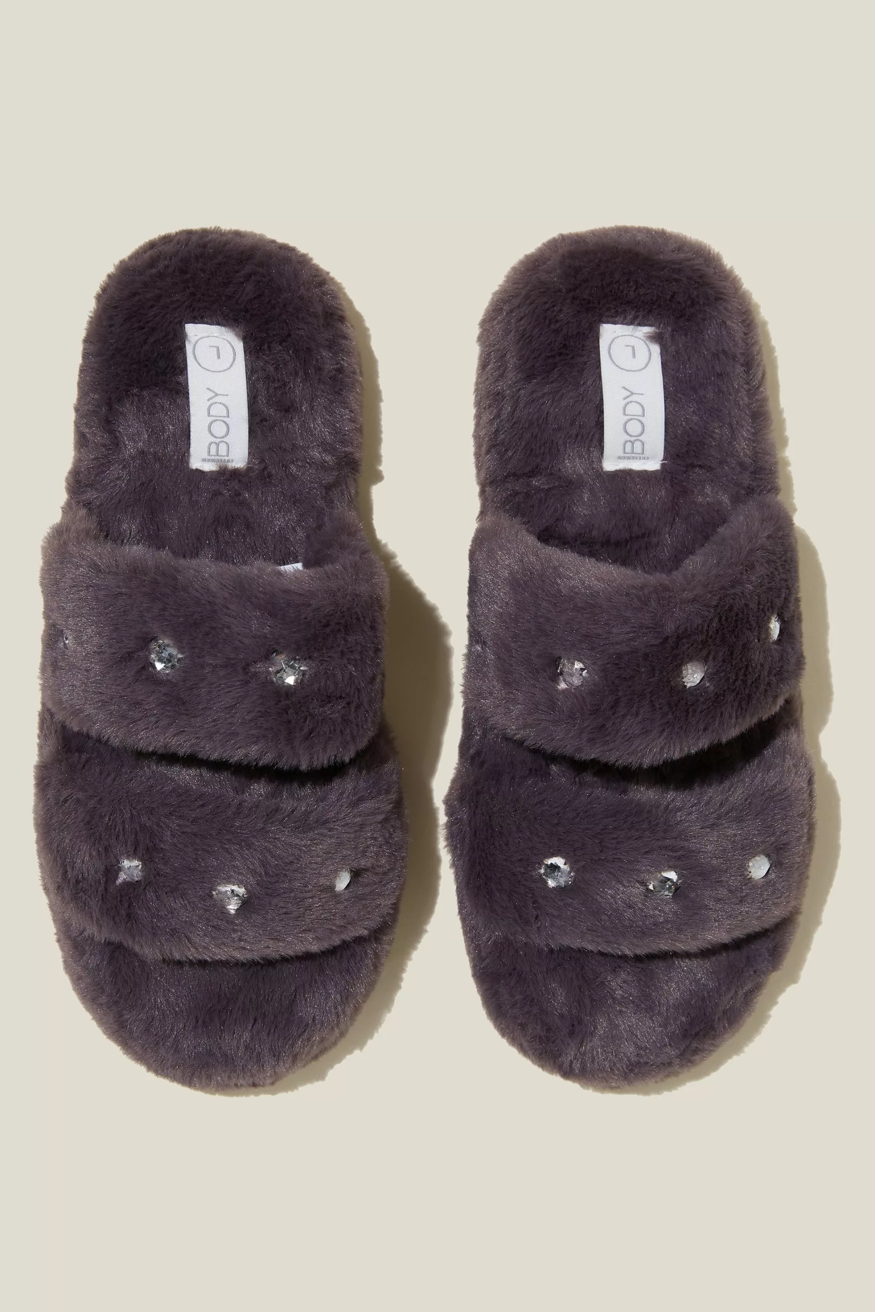- Features ultra soft faux fur and a double vamp