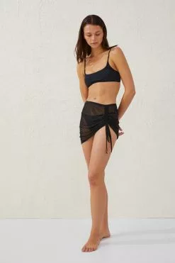 Body Mesh Gathered Beach Mini Skirt