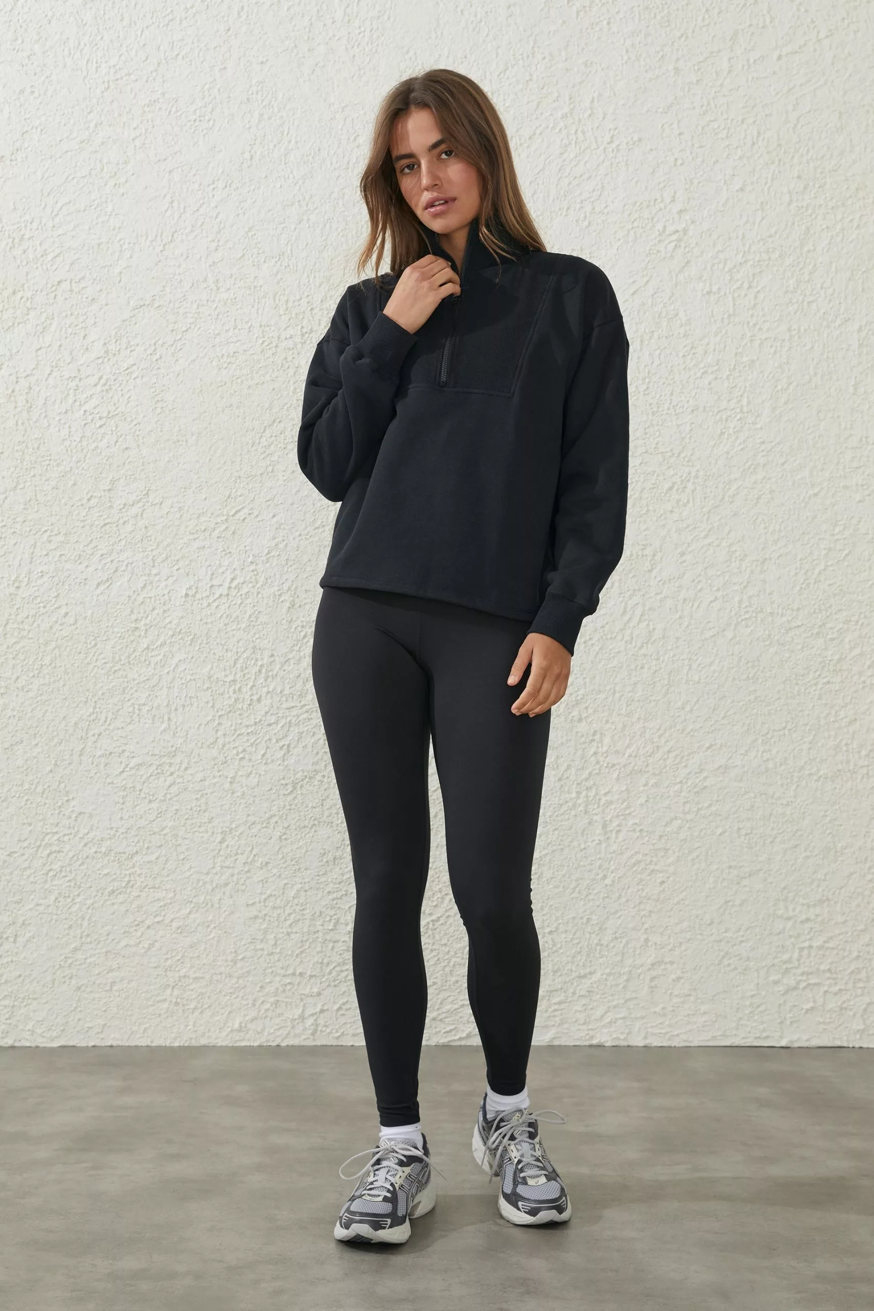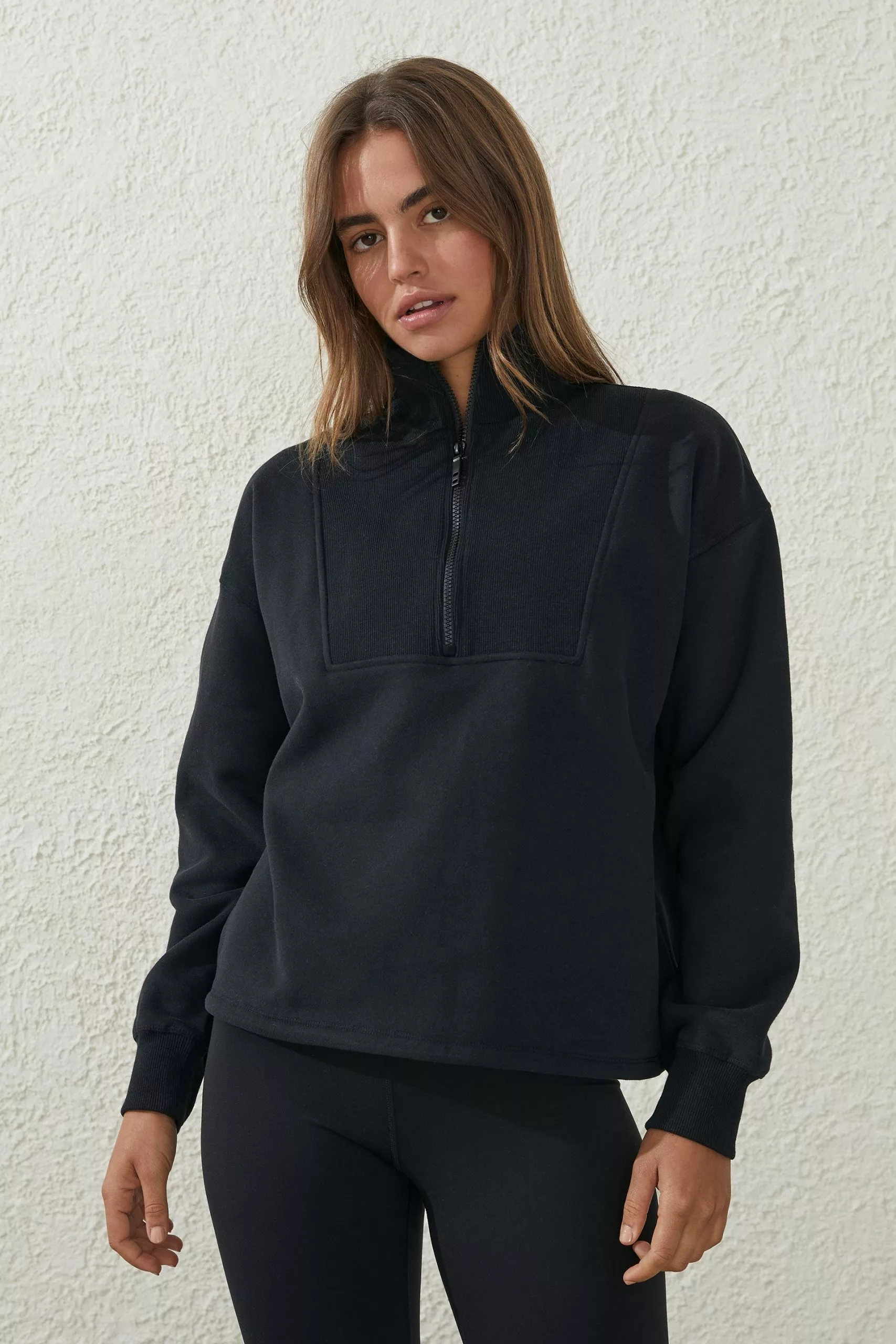 Comfortable relaxed fit – Dropped armhole adding mobility – Elasticated cuffs – Pullover style with half zip front – Elasticised hem with cinch cord – Front rib yoke detail – Puff print