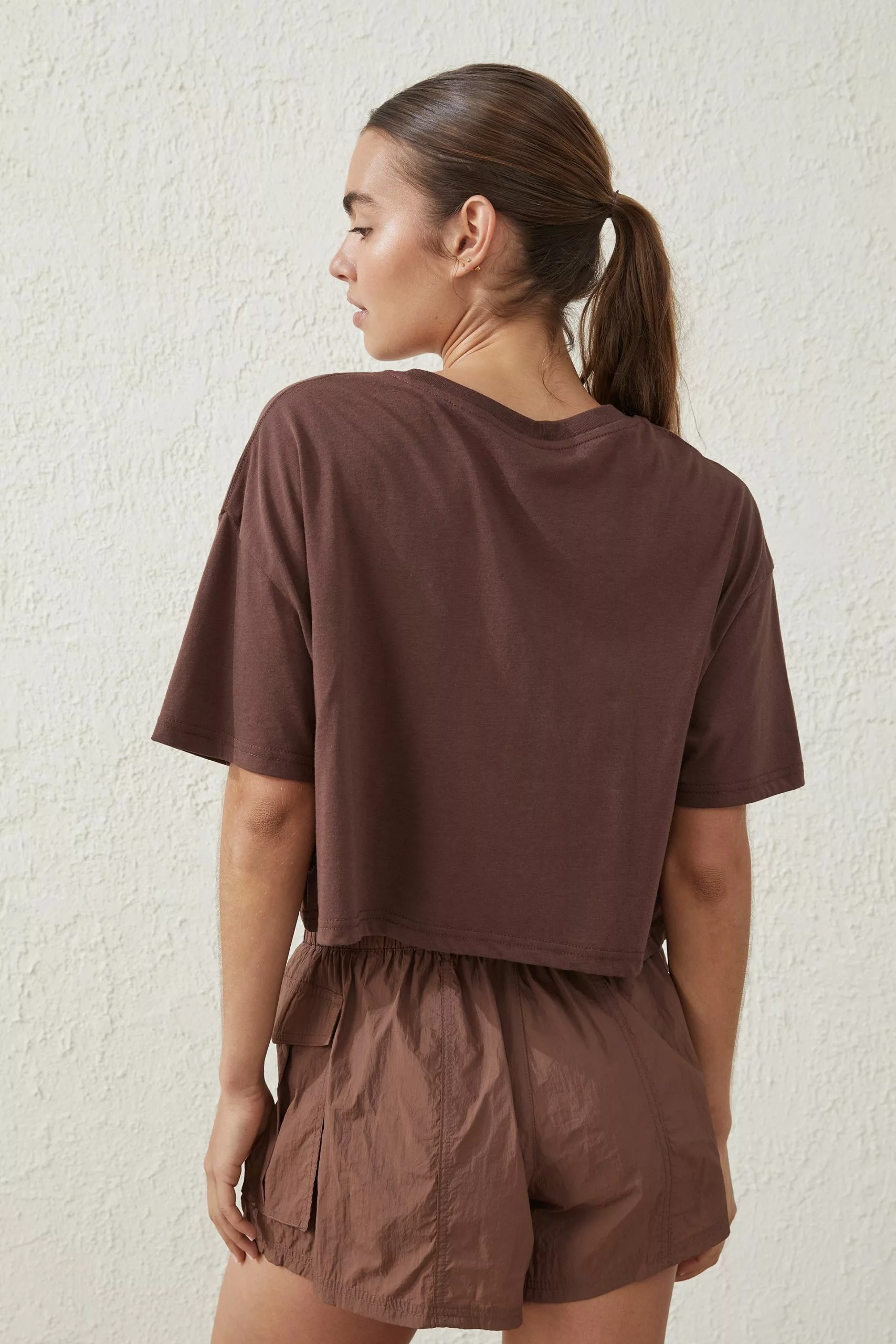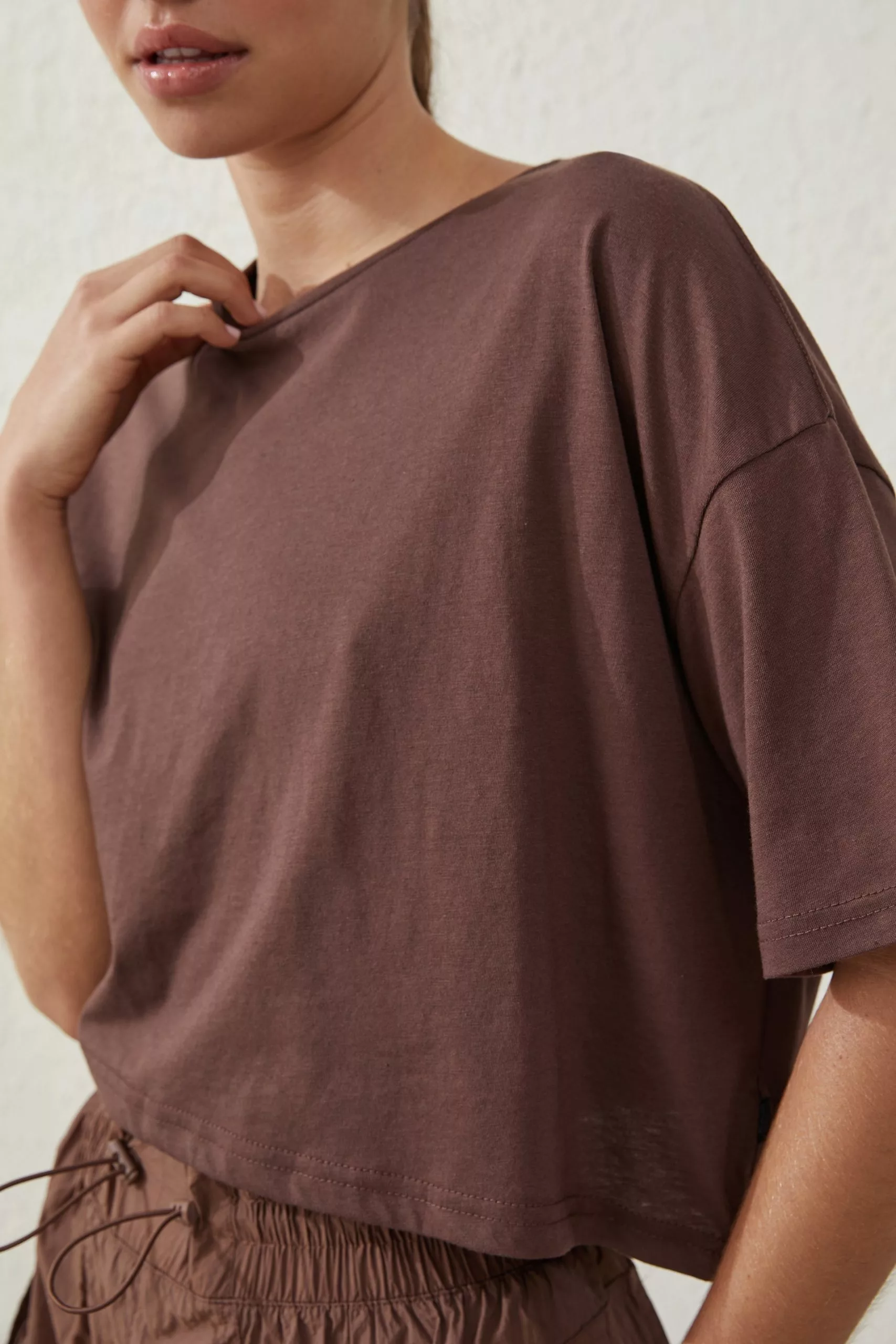 T-Shirt, Off the body shape, Cropped length, Soft drapey fabric, Dropped armhole, Loose fit