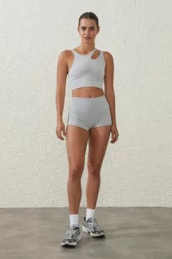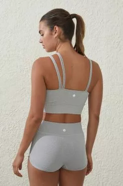 Seamless fabrication extra comfort, No uncomfortable seams rubbing, Rib hem for added support, Asymmetrical strap detail at neck