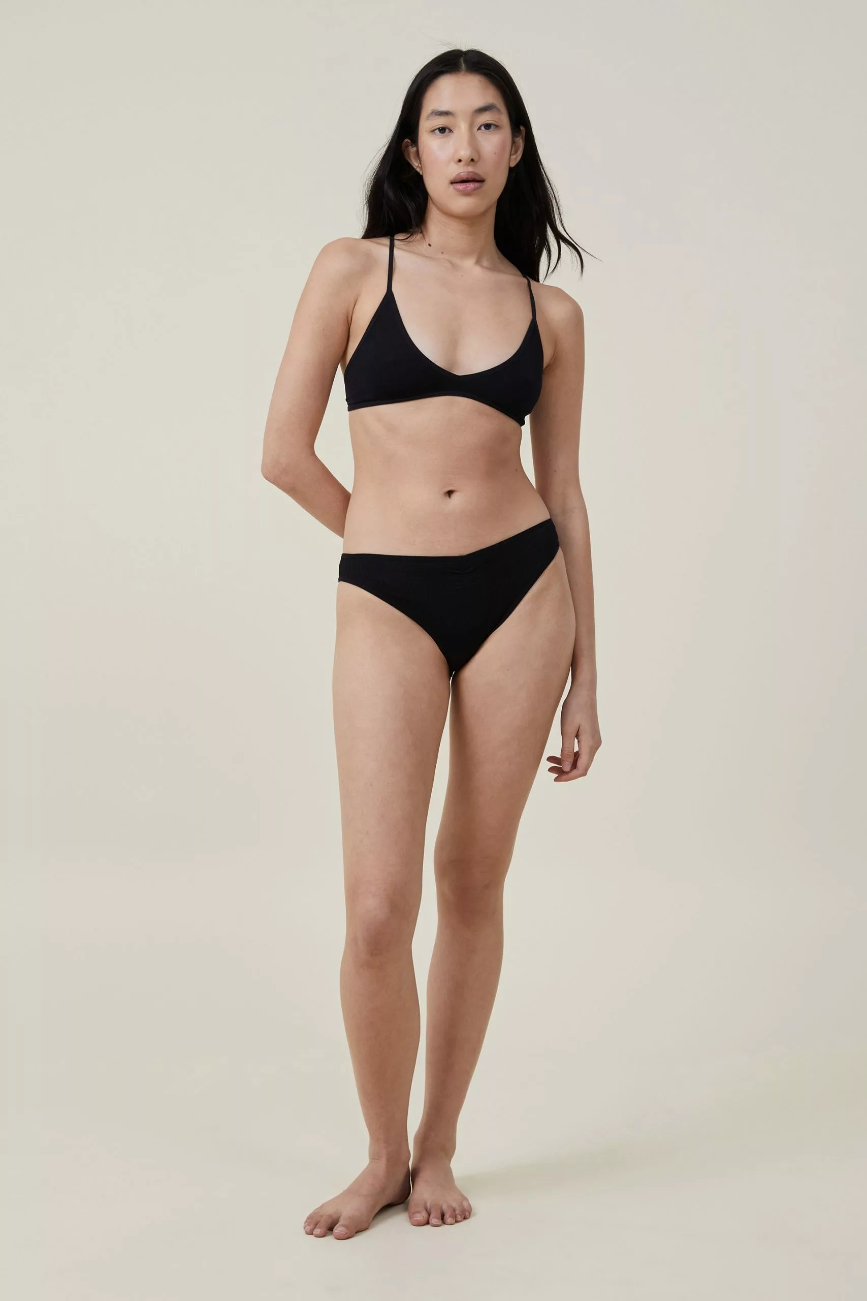 Super comfy and easy-to-wear, the seamless chunky triangle bralette is a great addition to your intimates drawer. A wide strap design in a flattering ribbed fabrication, this crop is made to be worn your way. Show it off under your fave sheer top.