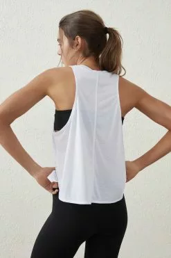 Comfortable Relaxed Fit – Sleeveless Top Shape – Scooped Neckline – Slimline Athletic Racerback – Curved Scoop Hem