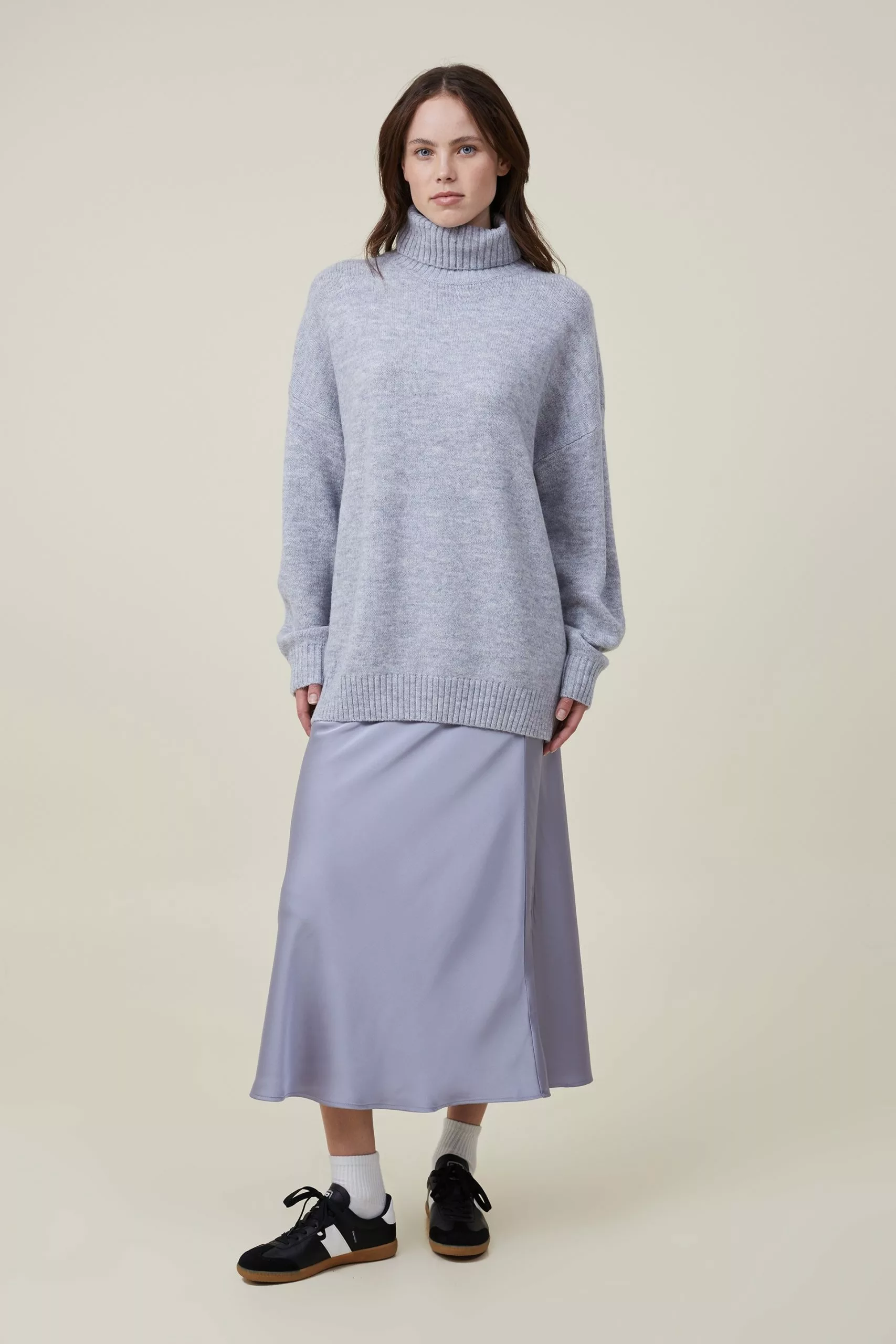If you don’t have The Blondie mock neck pullover in your wardrobe this season, you should get onto that. A serious essential, this pullover with a mock neck and dropped shoulders.