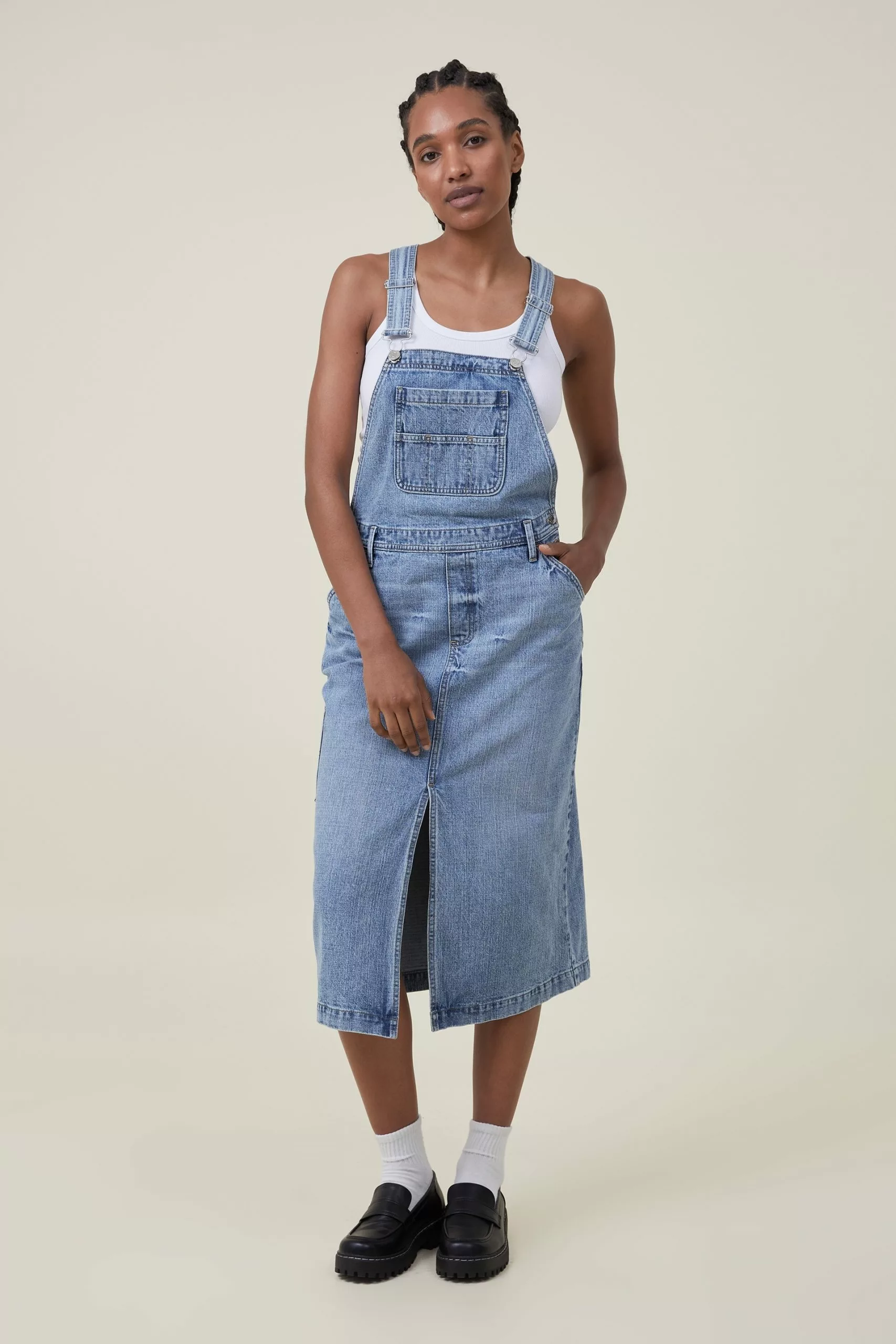 COTTON ON Denim Pinafore Midi Dress