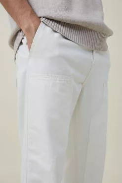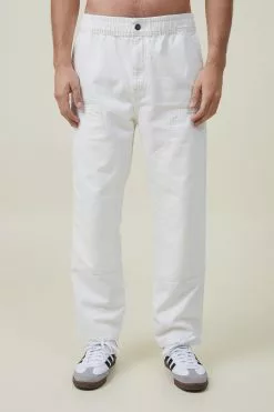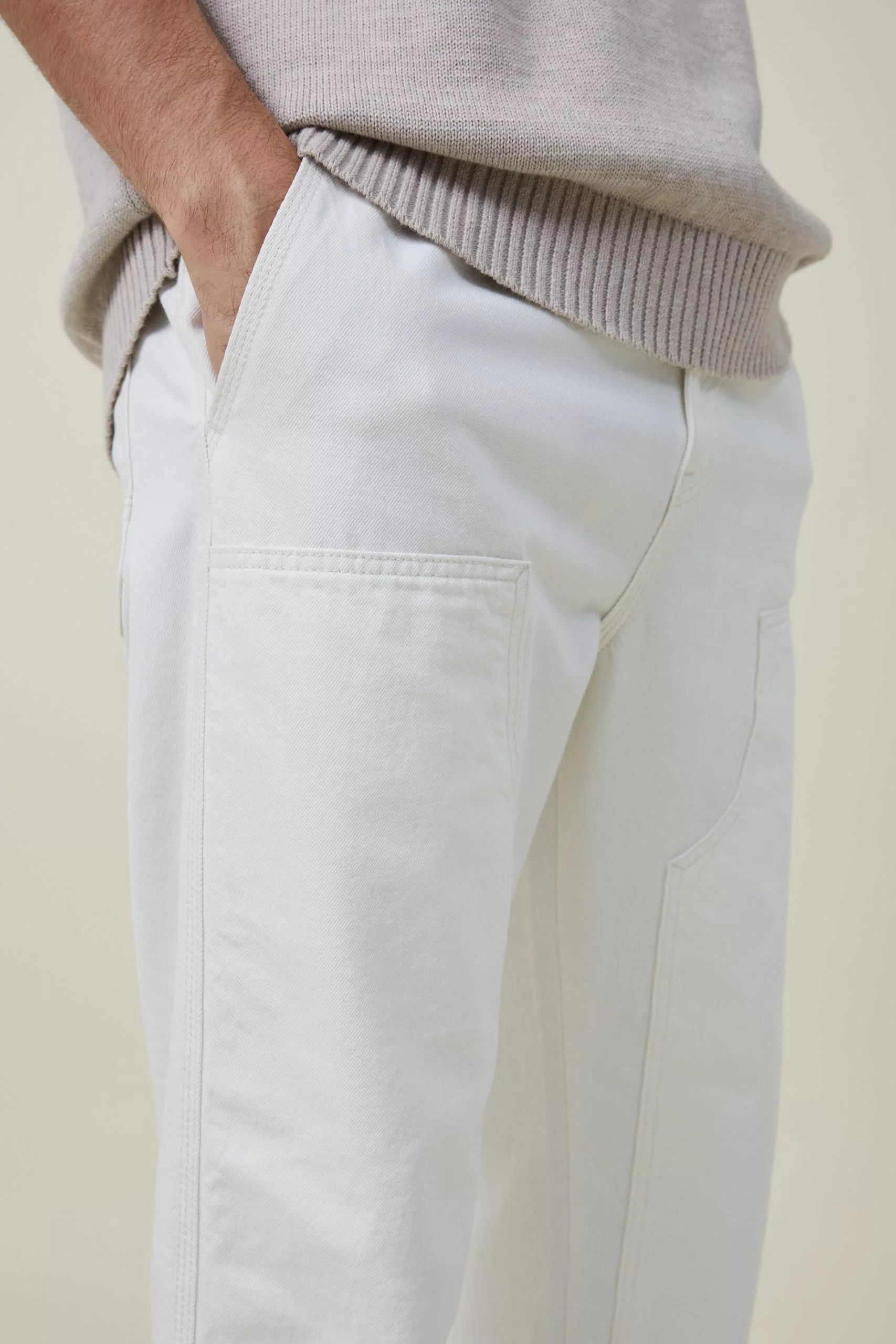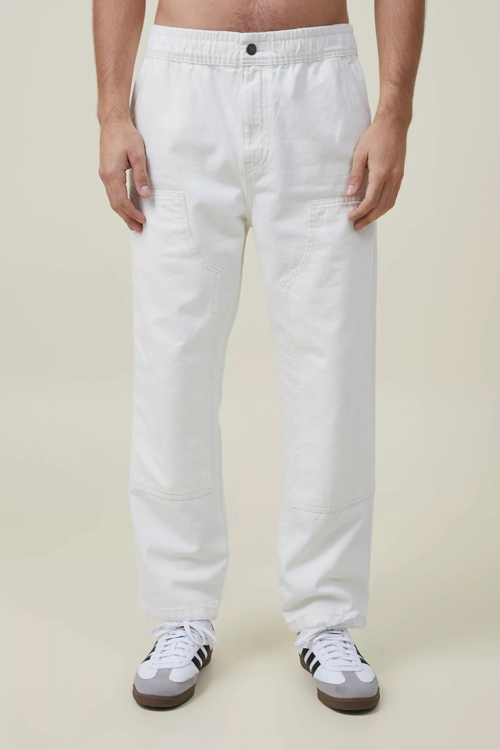 Elasticated worker jean is a casual draw string waist style with workwear detailing and a wider leg profile.