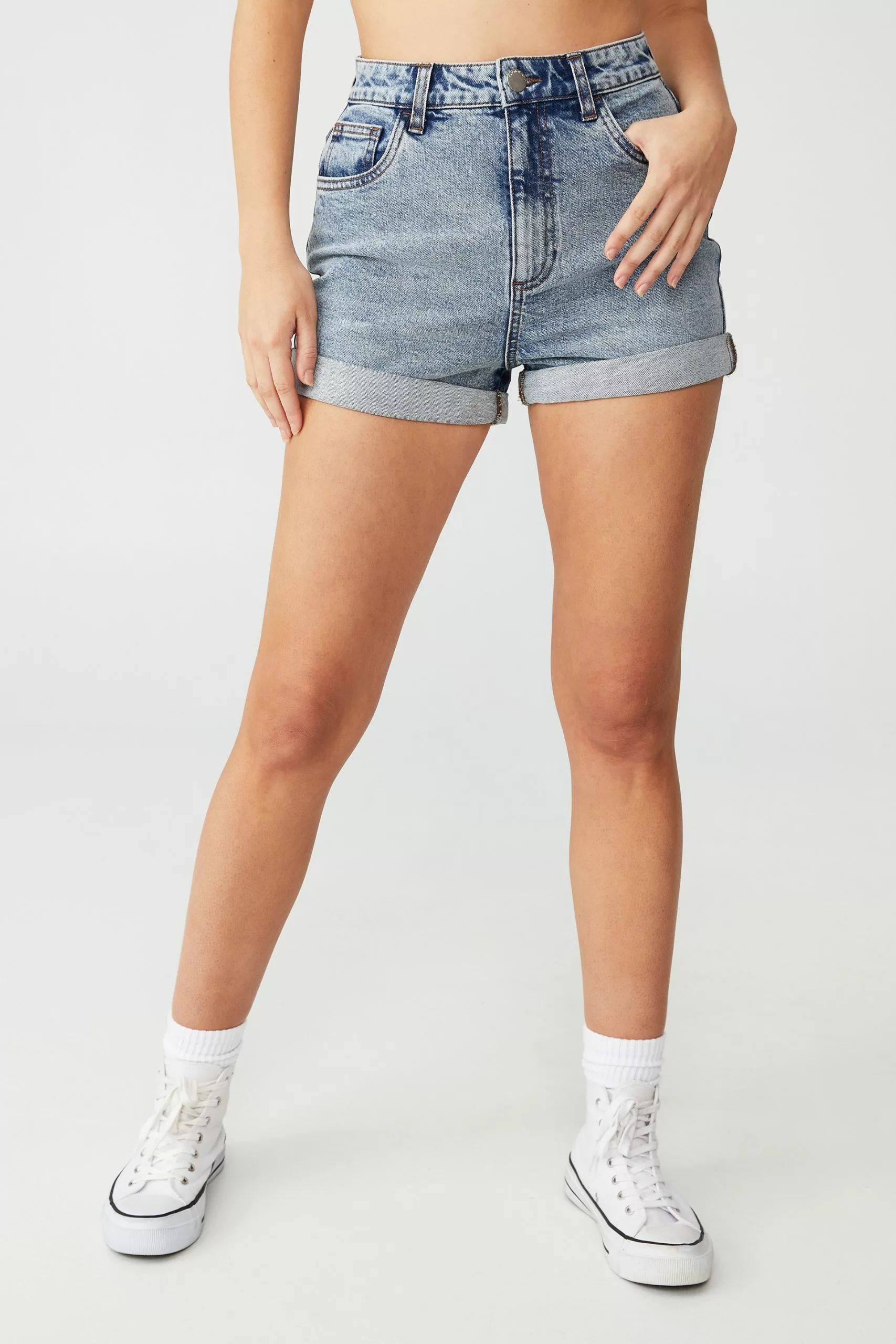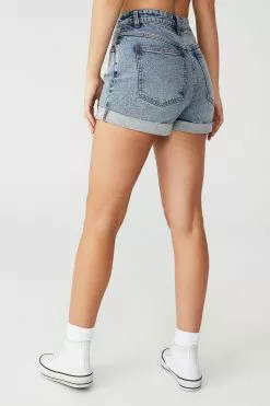 High waist, mini length. There’s a lot to love about high rise classic stretch denim short. Made from comfortable stretch denim fabric for a little extra give, this denim short is a wardrobe staple year round.