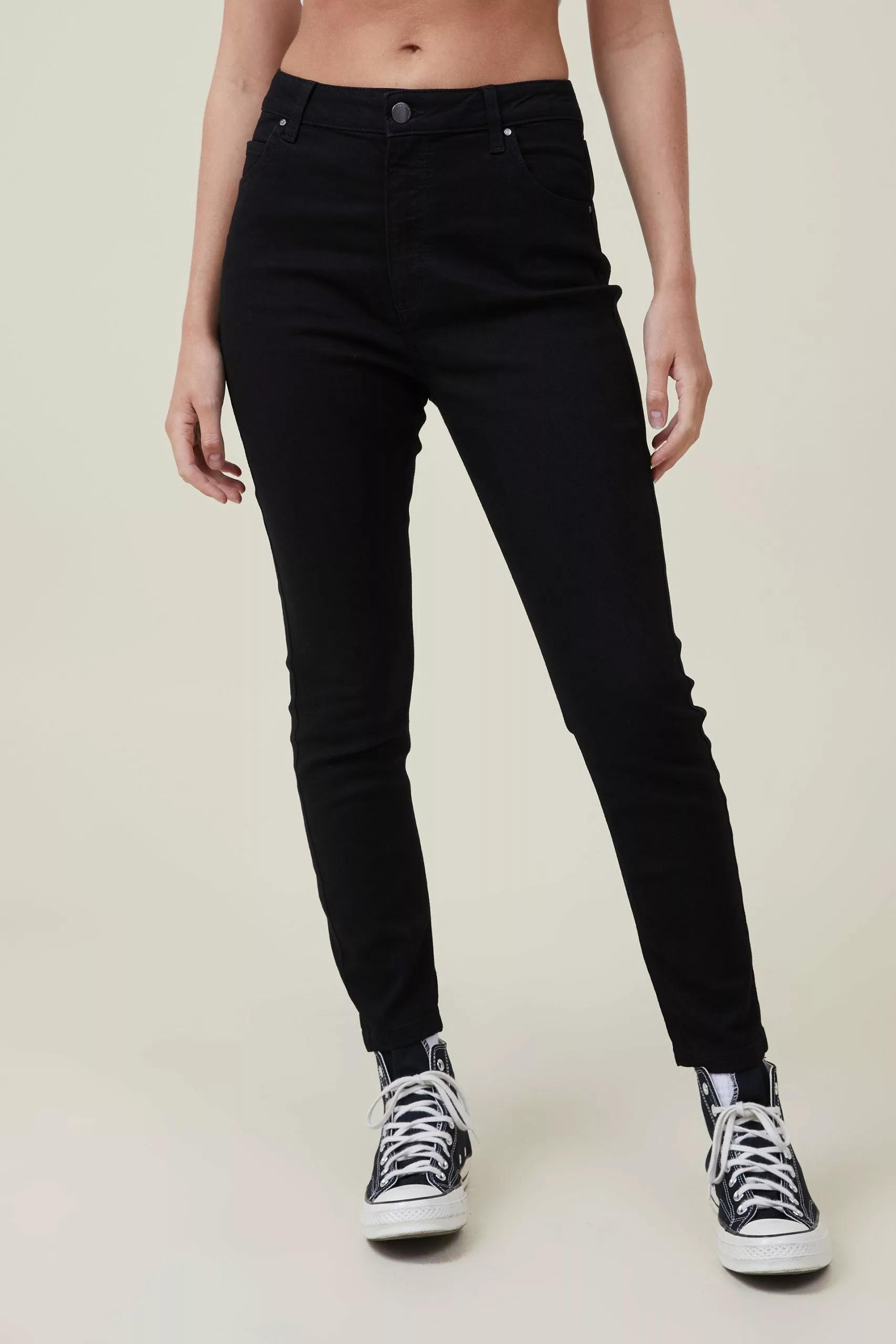 Expect legs for days in the high rise cropped skinny jean. Made from stretch denim, these high-waisted jeans hug your curves for a smooth, sleek look. The ankle-grazing length makes them perfect to wear with sneakers, boots, heels and flats.