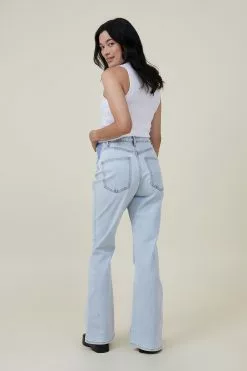 CURVE HIGH RISE FLARE JEAN – FITTED THROUGH WAIST AND HIP – VINTAGE INSPIRED FLARE – FULL LENGTH – COMFORT STRETCH DENIM – 20% RECYCLED COTTON – OZONE WASH – SIGNIFICANTLY LESS WATER USAGE