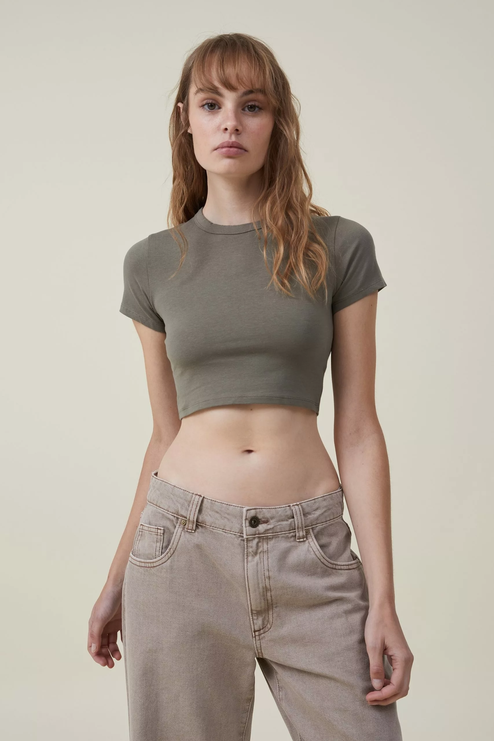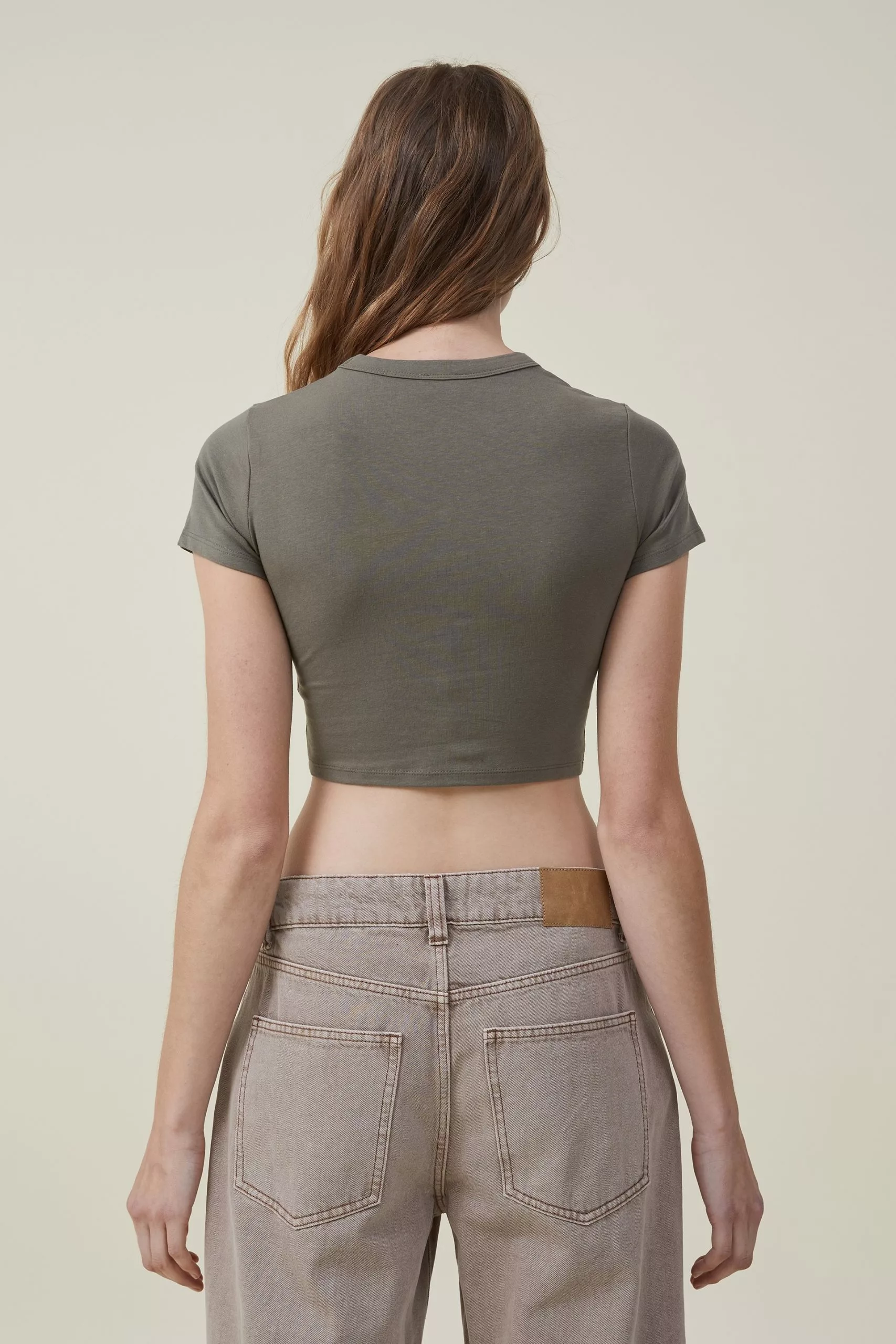 The micro t-shirt is a serious wardrobe essential. A fitted crop that screams comfort, it pairs back perfectly with your fave denim. Pick it up in a range of trending colours for easy everyday styling.