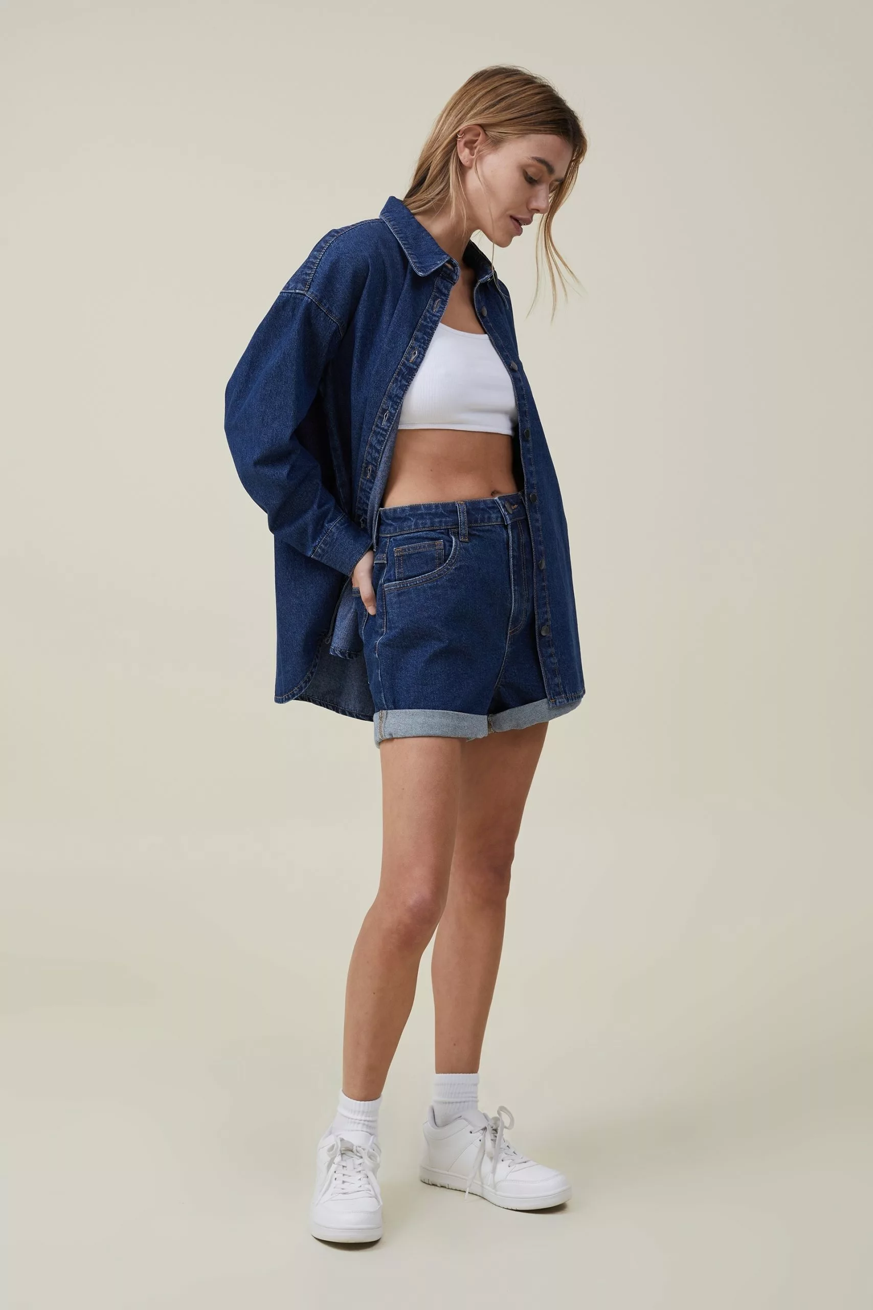 - Oversized denim shirt