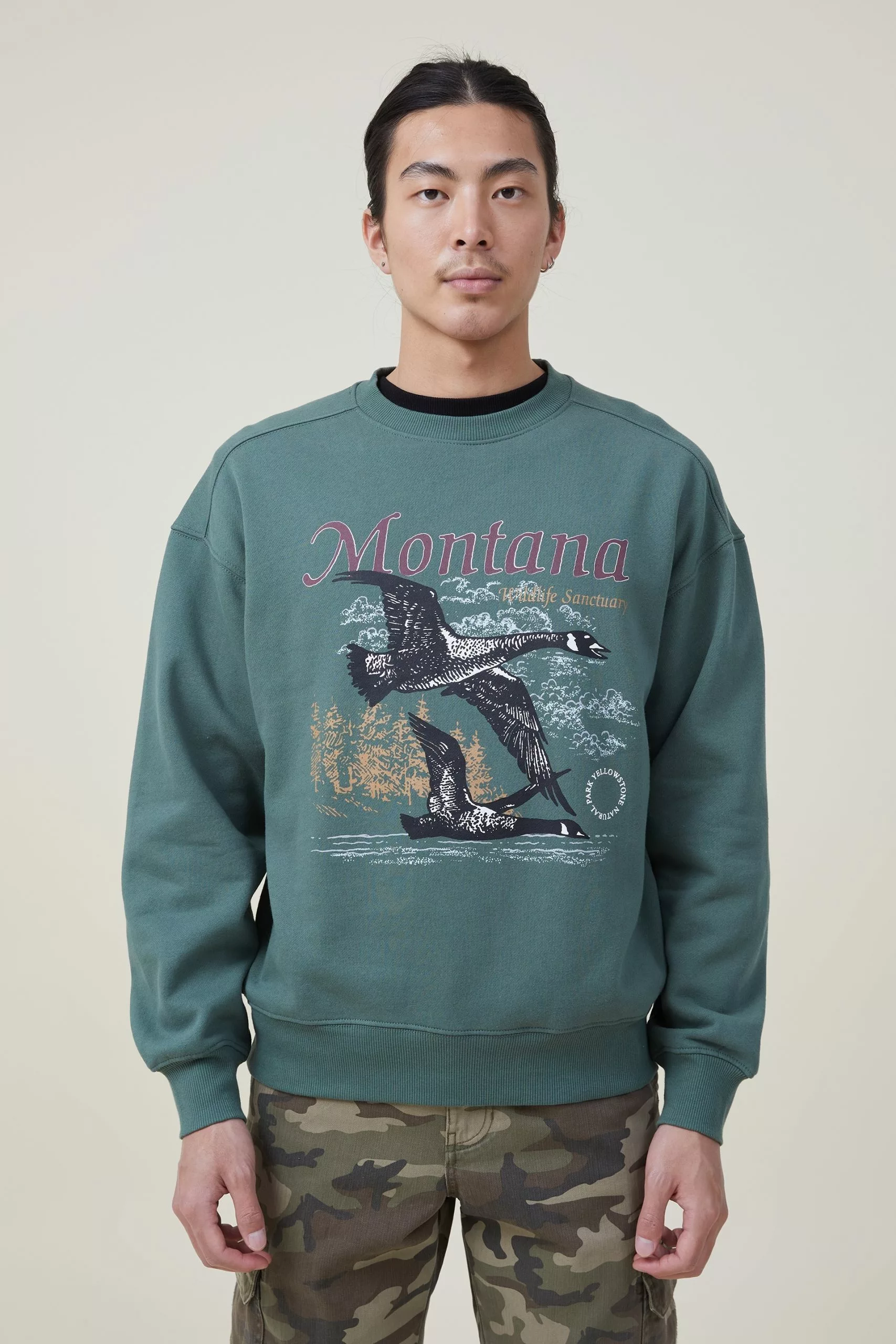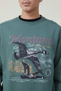 Perfectly oversized crew in plush, cotton rich fleece. Featuring in house designed graphics.