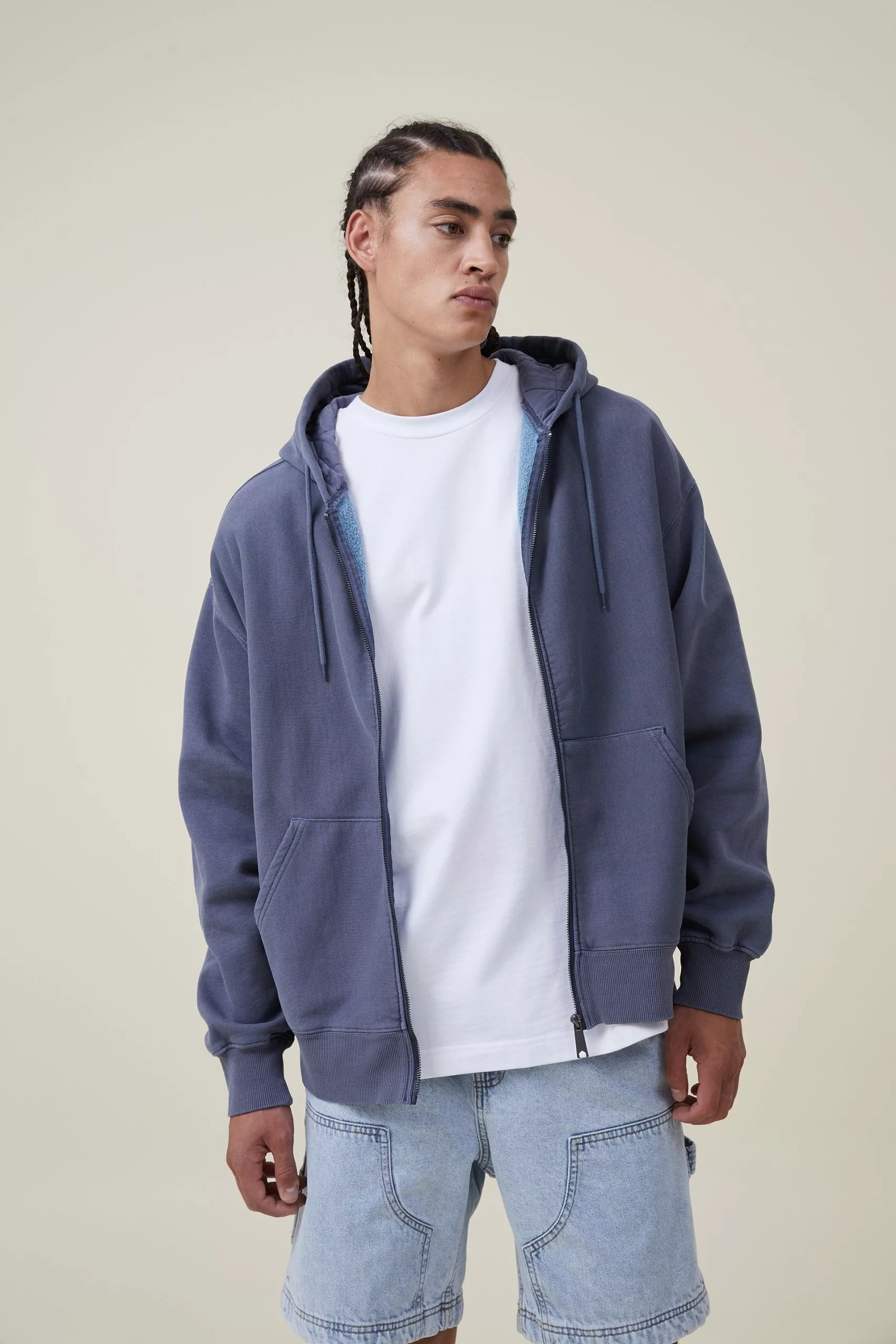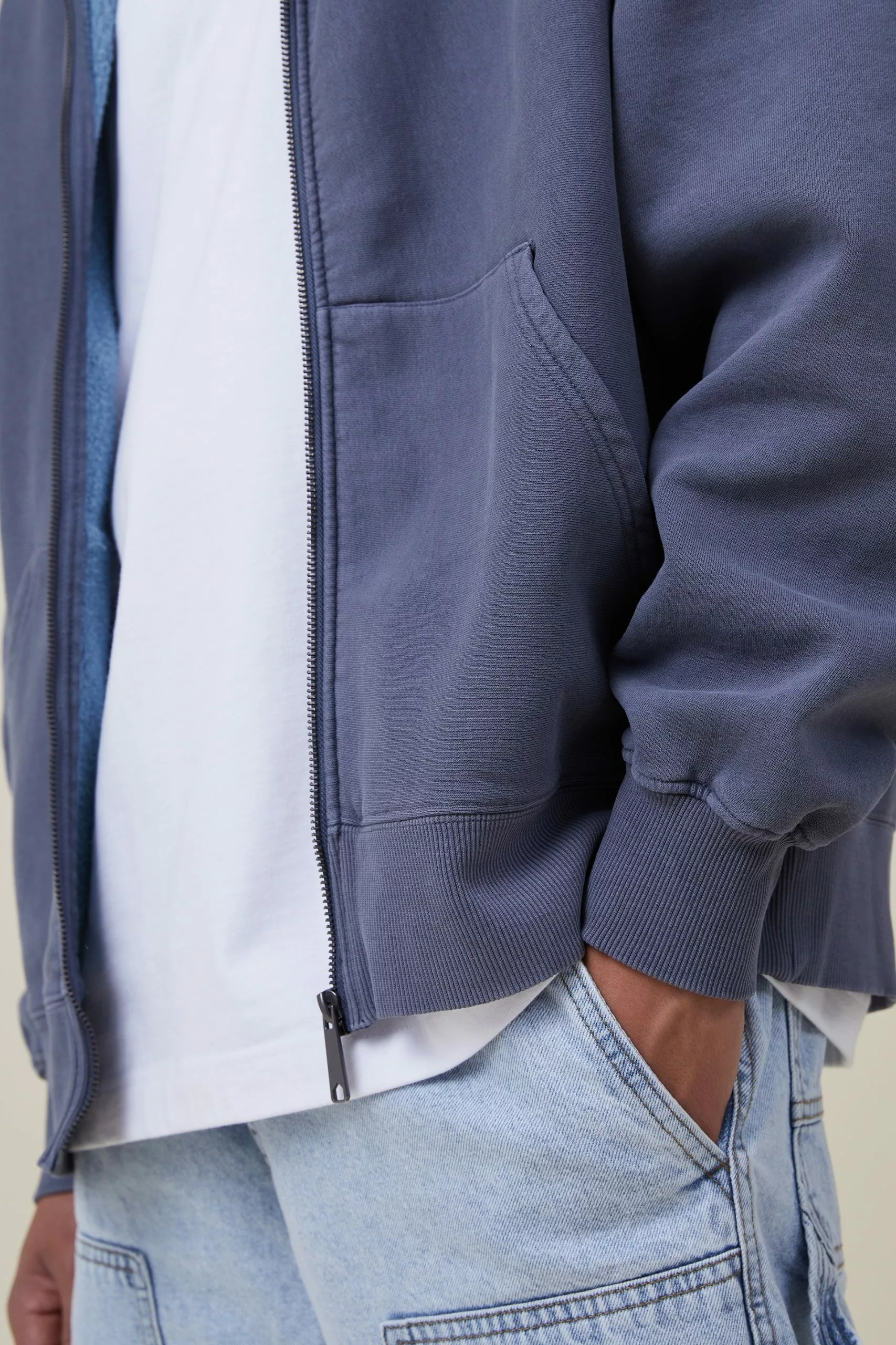 - Oversized fit fleece zip through hoodie