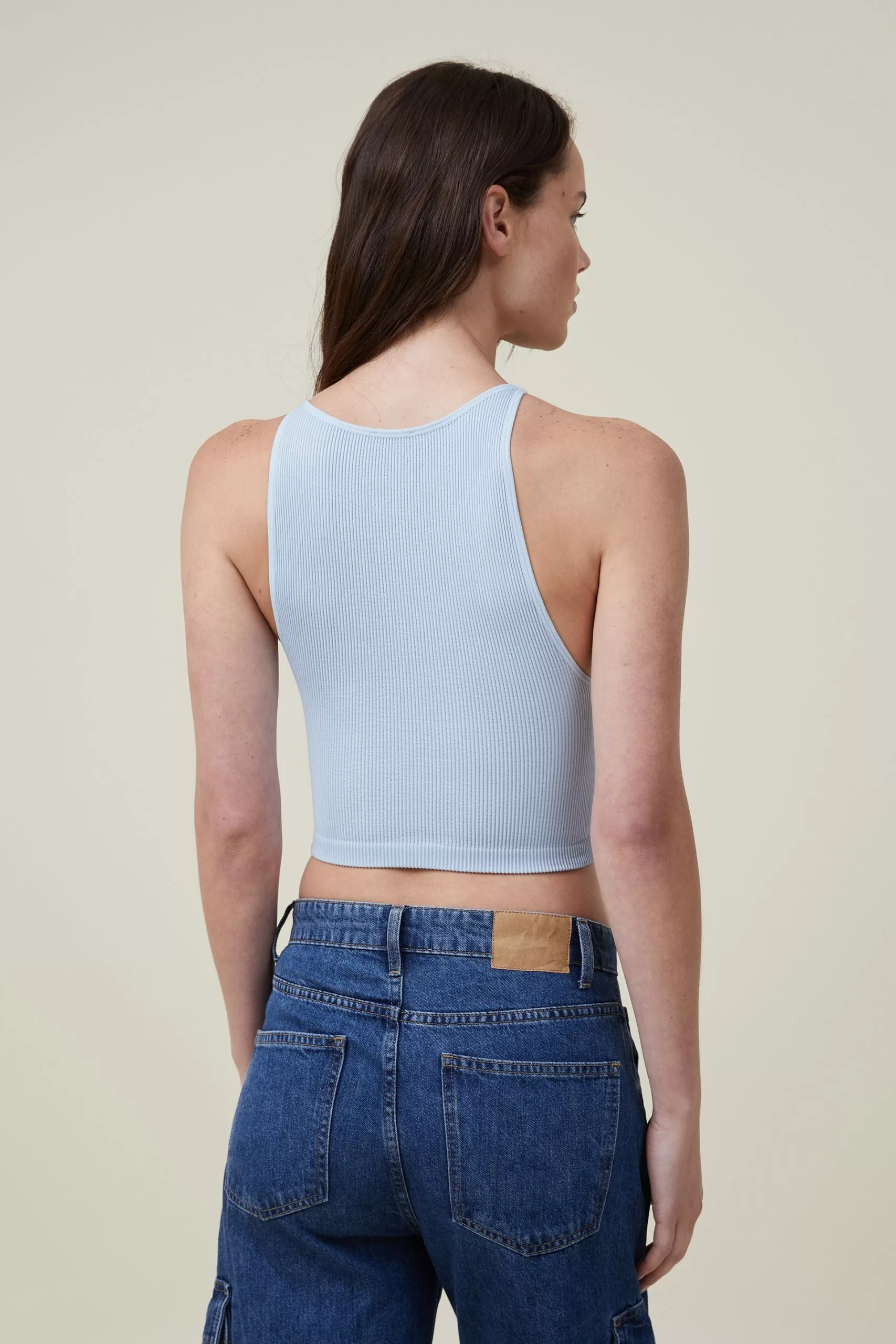 Anything but basic, the Benni seamless high neck tank was made for your favourite high waisted denim. Seamless for a smooth fit, this cropped fitted tank is the ultimate wardrobe staple.