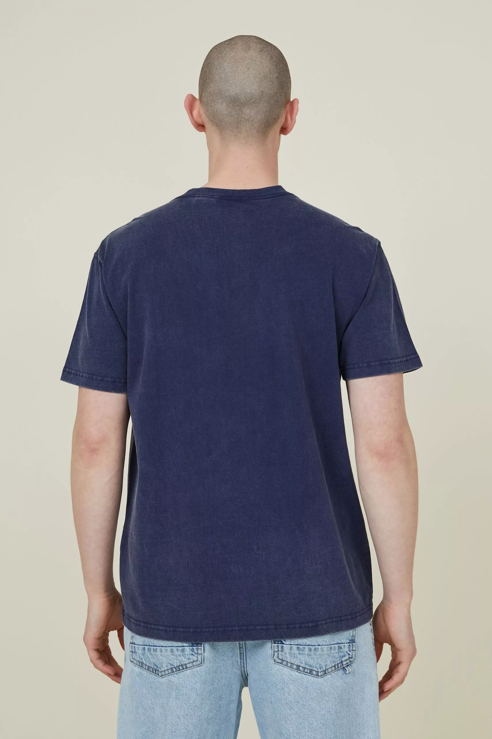 Men’s graphic tee using artwork in collaboration with the most current license brands, with premium washes and elevated execution.