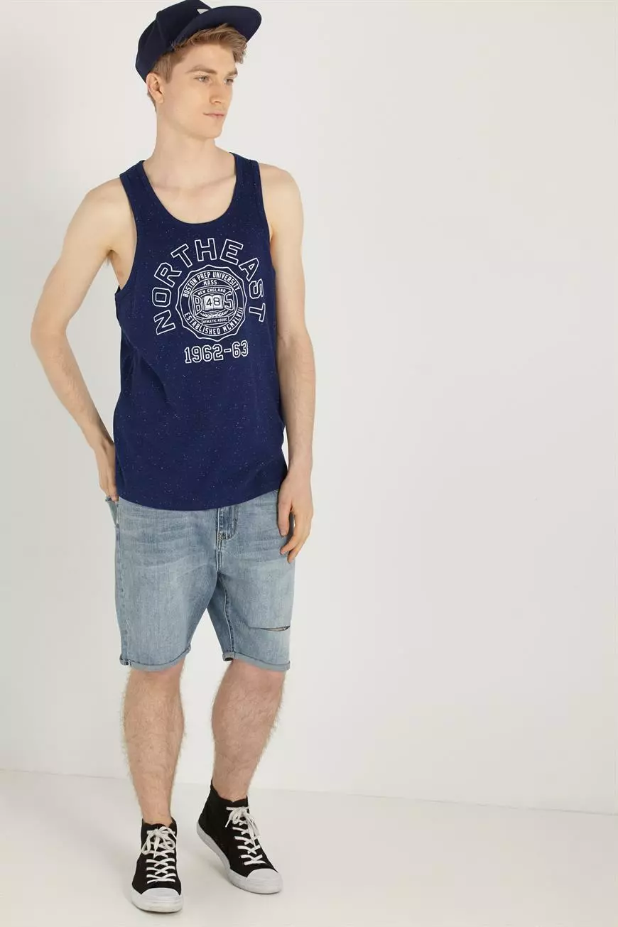 - Muscle tank shape with dropped armhole