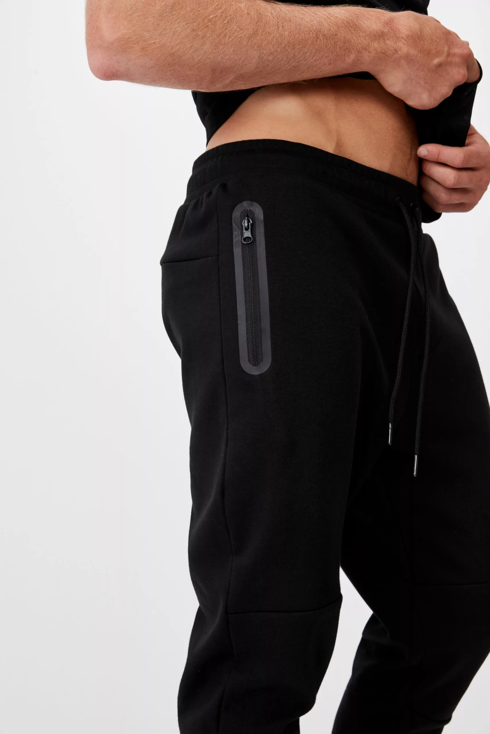 A fleece track pant made to suit an active lifestyle, with front zip pocket and elasticated cuffed hem to finish.