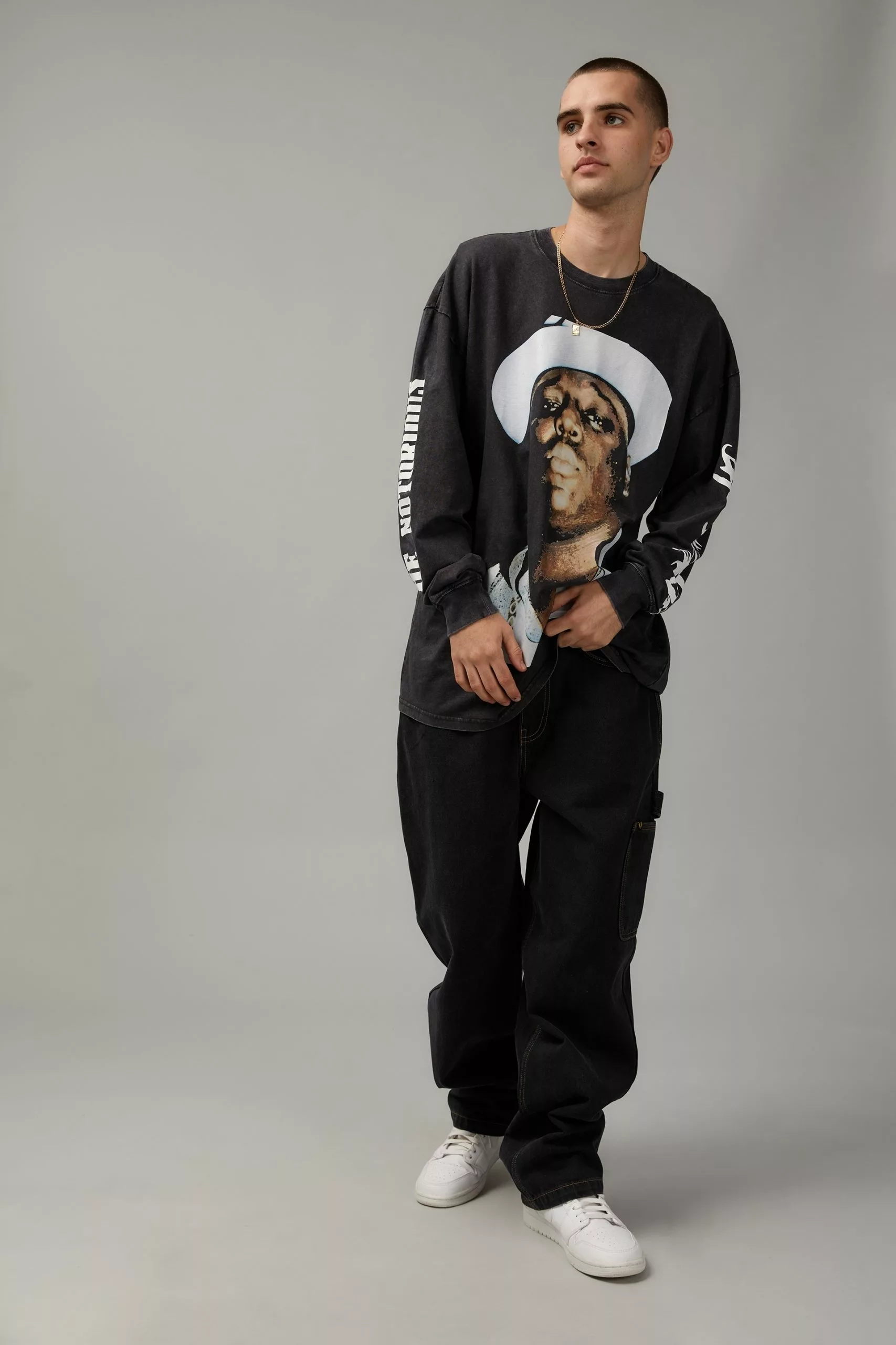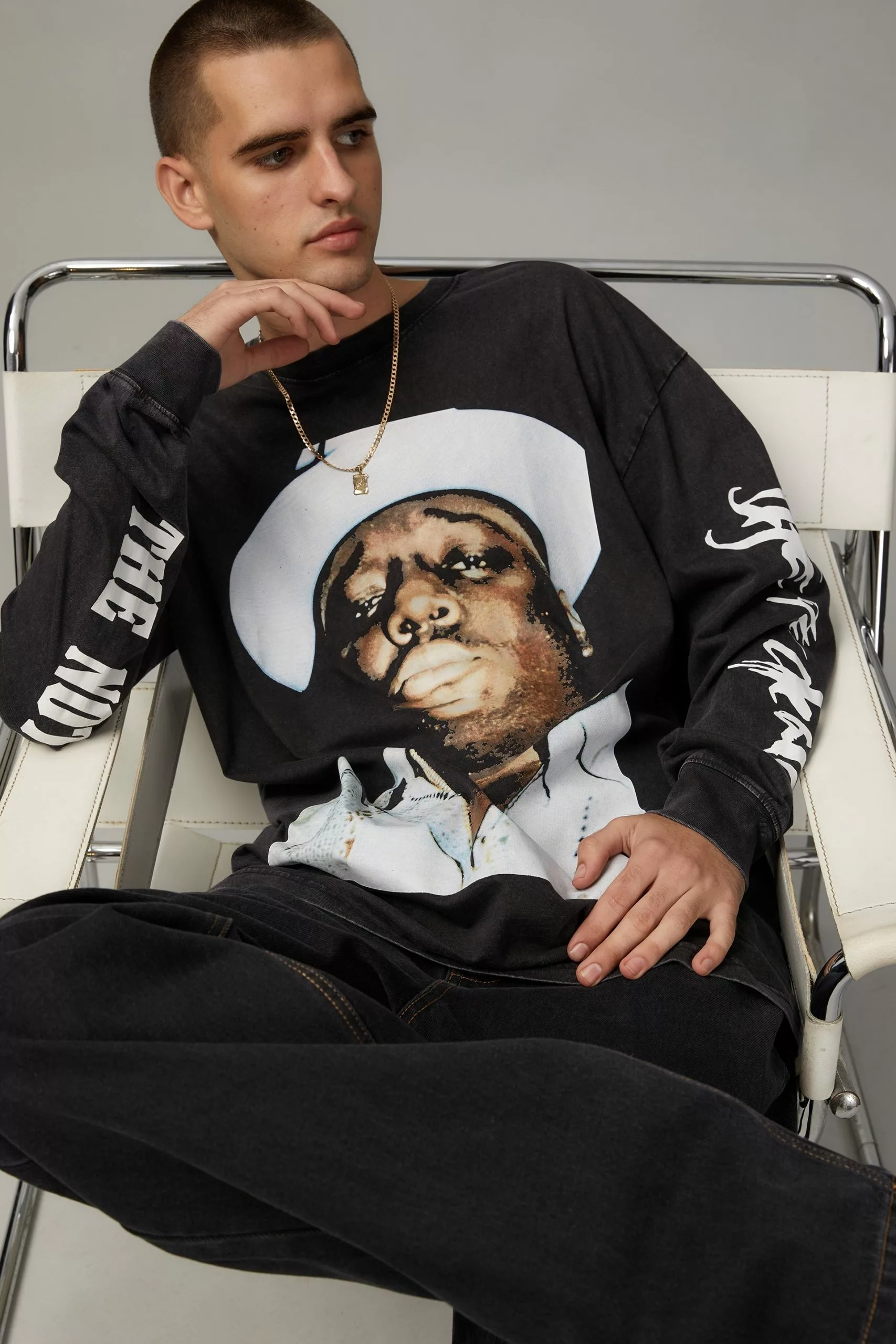 A streetwear staple and one for the collection that won’t disappoint. Featuring a crew neckline, long sleeves, drop shoulder and iconic graphic print of music greats we know and love. Pair with our Factorie trackies and sneakers for all the right attitude
