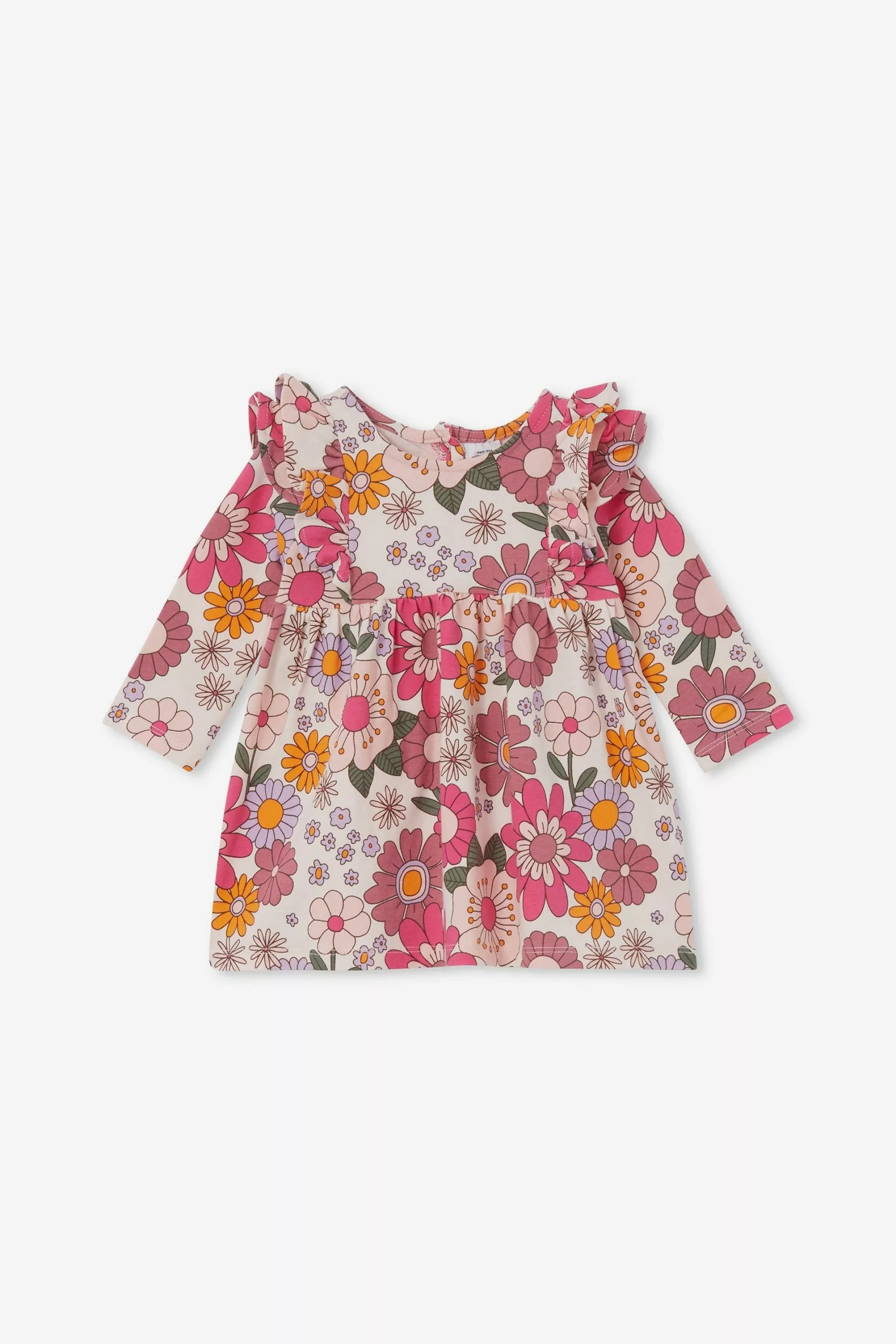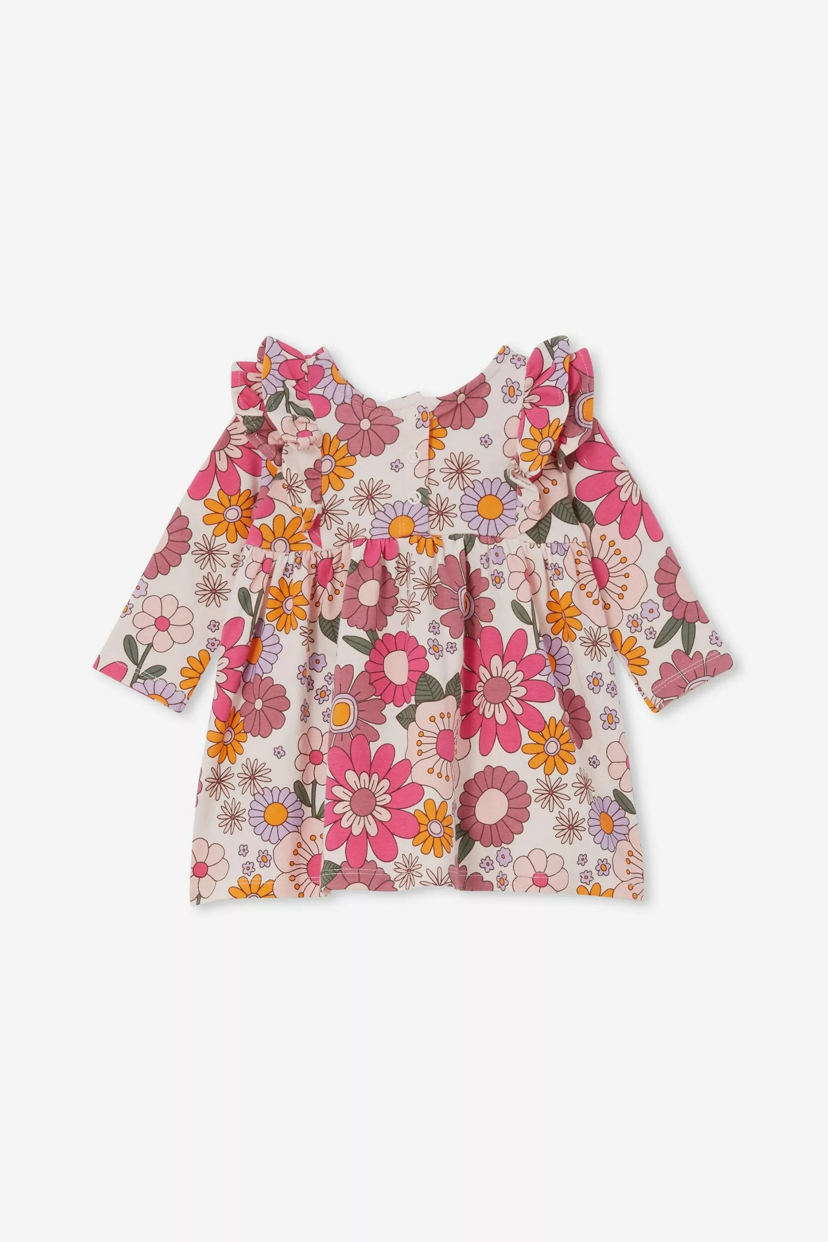 It doesn’t get cuter than the Mandy Long Sleeve Ruffle Dress. The perfect year-round option for bub, this dress features long sleeves for added warmth and, ruffle details for extra style points. Choose from a fun range prints for every day.